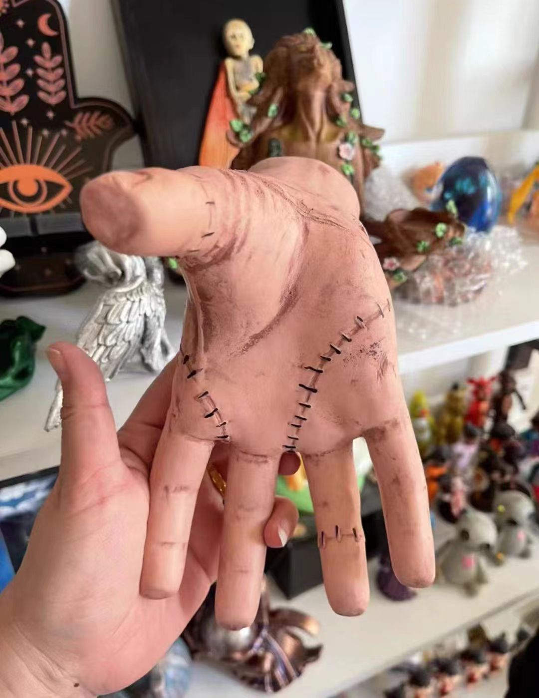 Every scar, vein, and stitched line has been carefully crafted to recreate the iconic βThingβ from Wednesday Addams.